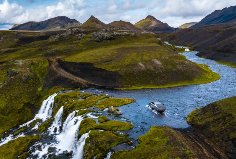 Но что ещё интереснее, Cybertruck может выступать в роли тягача. Две старшие версии способны буксировать прицеп с грузом общим весом до 4989,5 кг — это средний вес африканского слона! Заднеприводная версия осилит буксировку груза весом до 3401 кг.