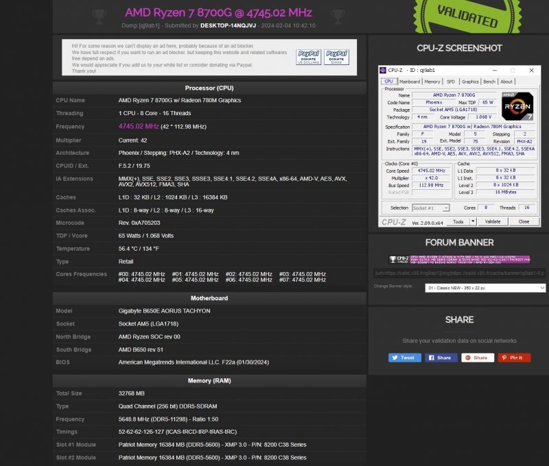 Спустя несколько часов другой оверклокер зарегистрировал результат разгона памяти Patriot с профилем 8200 МТ/с до 11 298 МГц на материнской плате Gigabyte Aorus B650E Tachyon.