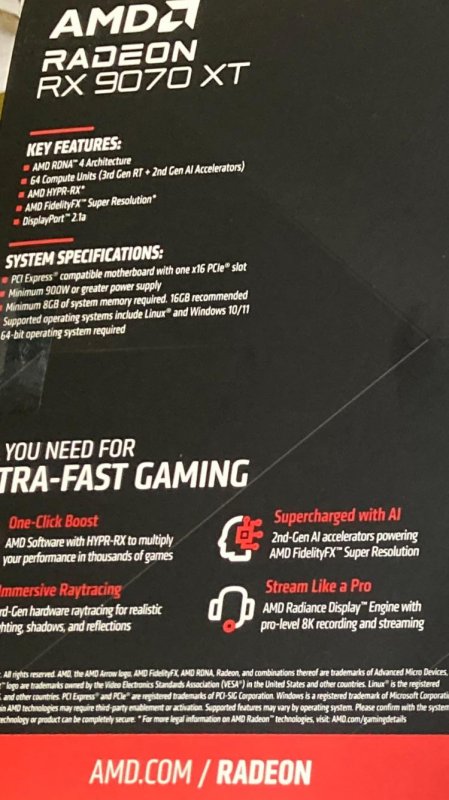 В системных требованиях видеокарты PowerColor Radeon RX 9070 XT Red Devil замечен блок питания мощностью минимум 900 Вт. Эта информация появилась на форуме Reddit, где пользователь с ником Emotional-Rip7202 опубликовал фотографию задней части упаковки видеокарты.
