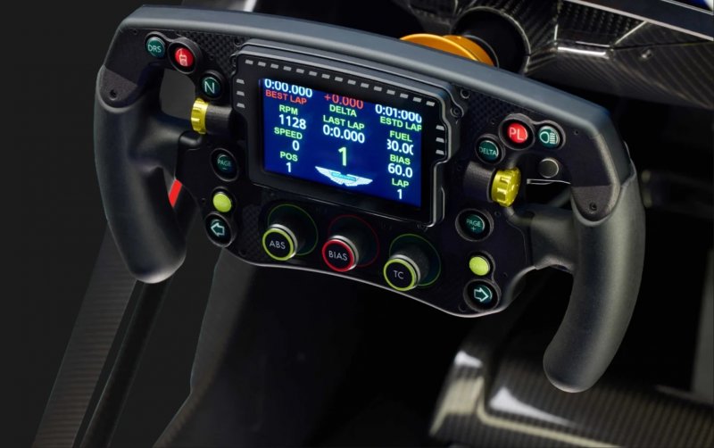 Рулевое колесо, имитирующее штурвал болидов «Формулы-1», оборудовано девятью поворотными органами управления, двенадцатью кнопками, ЖК-дисплеем и подрулевыми переключателями передач из углеродного волокна.
