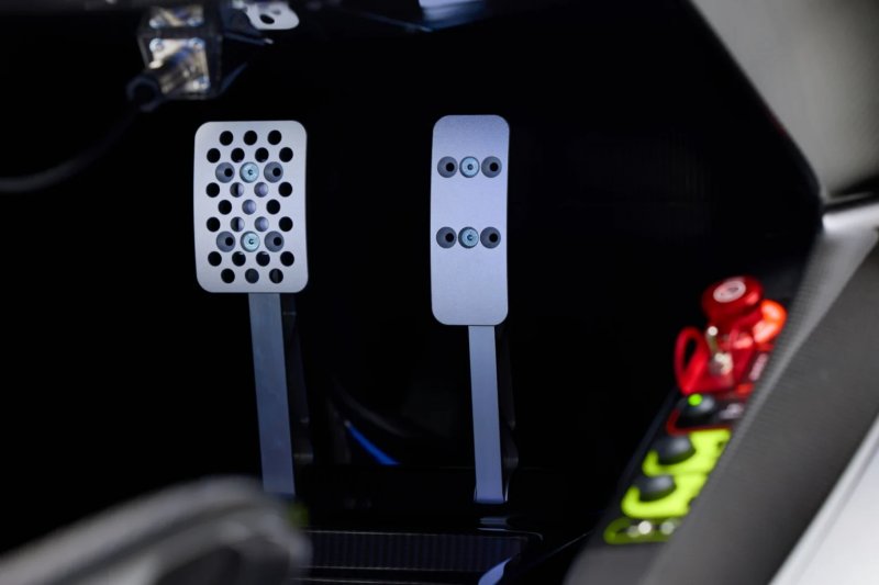 Электронно-управляемый регулируемый педальный блок в карбоновом корпусе обеспечивает ход педалей в пределах 200 мм.