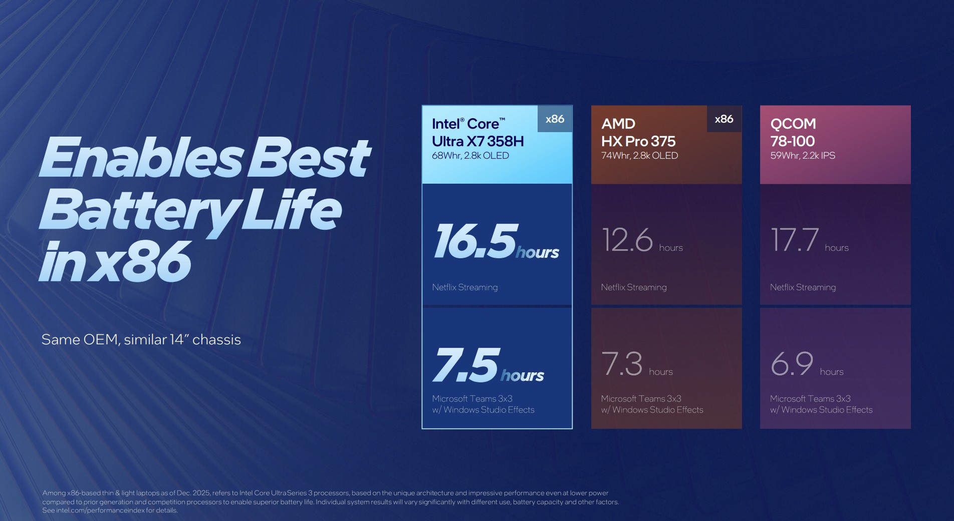 Intel нескромно заявляет, что Panther Lake — самые энергоэффективные x86-совместимые процессоры. Устройства на их основе обеспечат до 27 часов автономной работы. По крайней мере, такие данные приводятся согласно результатам внутренних тестов. В реальных условиях всё, конечно же, будет зависеть от сценариев использования.