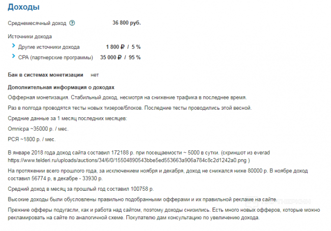 На момент продажи площадка приносила 36 000 в месяц. Основная прибыль идет с omniCPA — партнерской программы, которая специализируется на товарных офферах.