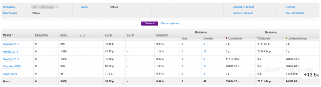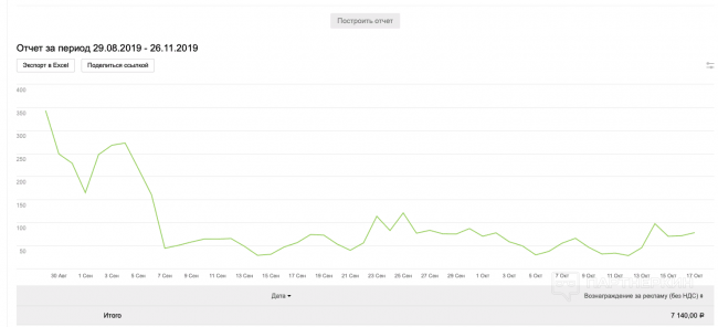 Интересно, что для подобной ниши у площадки высокий eCPC или эффективная стоимость кликов. Например, 66 рублей в сентябре 2019 года.