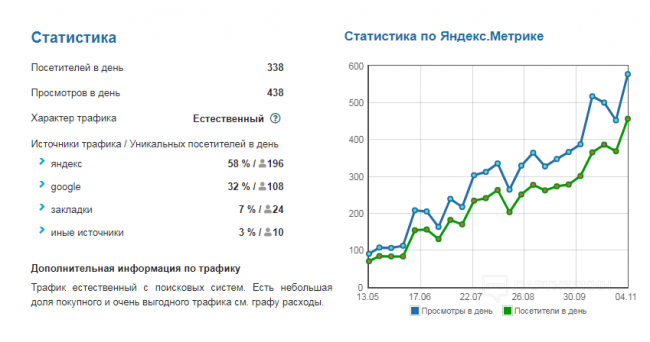 Благодаря этому, при небольшом количестве трафика, сайт зарабатывает неплохо.