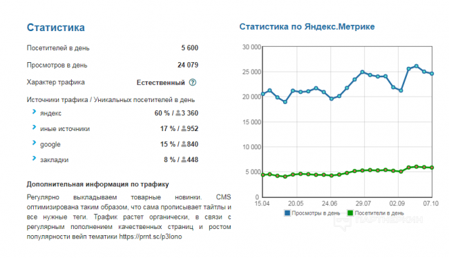 Трафик площадки будет только расти, а вместе с ним и доход. Будущему владельцу необходимо постоянно работать с контентом, расширять семантическое ядро, экспериментировать с покупкой трафика и анонсировать массовые распродажи.