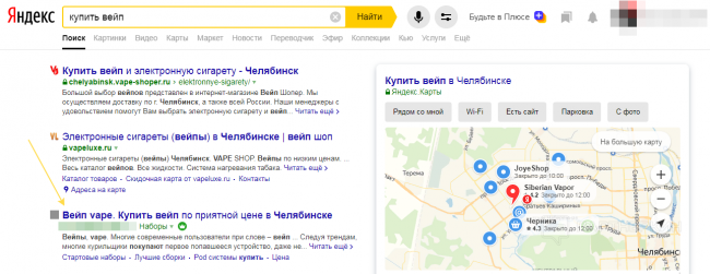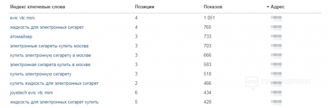 Сайт занимает топовые места в поисковой выдаче Яндекс по ключевым запросам: «вейп купить», «жидкость для вейпа купить», «жидкость для электронных сигарет купить», «боксмод», «дрипка», «мехмод», «juul купить» и другим.