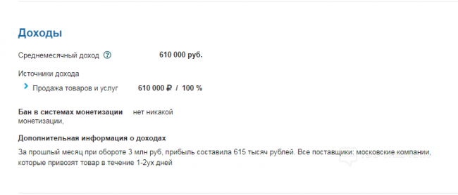 На момент продажи площадка приносила 610 000 рублей чистой прибыли при обороте 3 миллиона рублей.