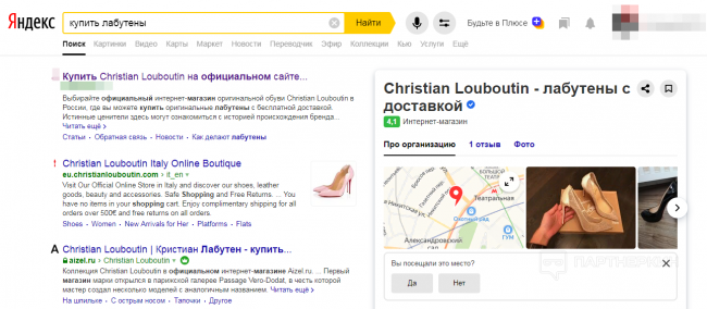 Сайт о элитной обуви для мужчин и женщин — лабутенах. В сутки на площадку заходит 97 пользователей: 75% из Яндекс и 18% из Google.