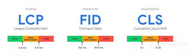 Largest Contentful Paint (LCP) — отрисовка крупного контента. Время, за которое большая часть контента отрисовывается на экране. То есть, когда юзер понимает, что со страницей уже можно взаимодействовать. Оптимальное время до 2,5 секунд, допустимое — до 4 секунд.
