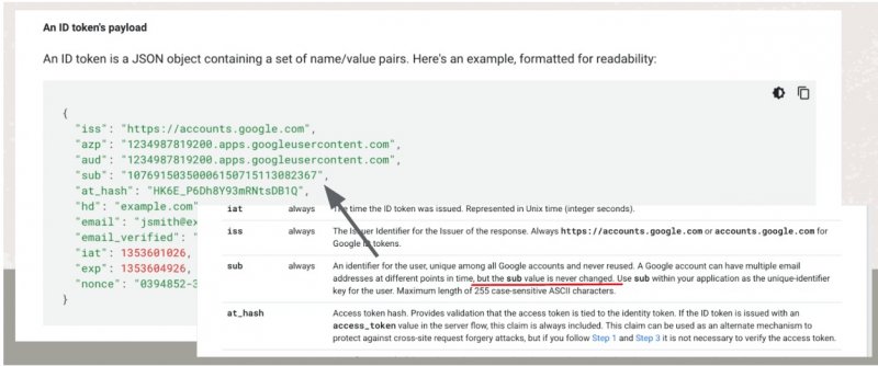 Эксперт объясняет, что в Google OAuth есть claim «sub», призванный обеспечить уникальный и неизменяемый ID для каждого пользователя и служащий для идентификации пользователей, невзирая на возможную смену домена или адреса электронной почты. Однако обычно коэффициент несоответствия sub составляет лишь 0,04%, что вынуждает такие сервисы, как Slack и Notion, полностью игнорировать его и полагаться исключительно на claim’ы электронной почты и домена.