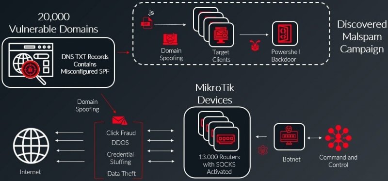 Обнаружен ботнет, в который входят 13 тысяч устройств MikroTik. Он эксплуатирует проблемы в настройках DNS-записей, чтобы обходить защиту и доставлять малварь, используя спуфинг примерно 20 тысяч доменов.