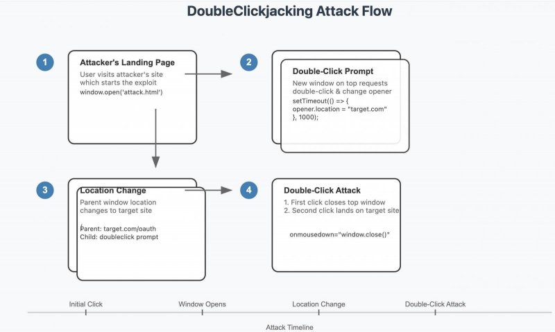 Независимый ИБ‑исследователь Паулос Йибело (Paulos Yibelo) рассказал о новой разновидности кликджекинга (clickjacking) и дал этим атакам название DoubleClickjacking. Злоумышленники могут обманом вынудить пользователей совершить нужные действия с помощью двойных кликов мыши, тем самым обходя существующую защиту.