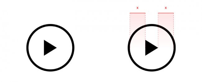 Так и разработчики иконок делают похожие коррективы, чтобы в итоге получить сбалансированное изображение. Дабы исправить положение треугольника из предыдущего примера, немного сместите его: