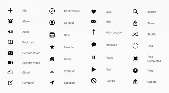 Чтобы вся коллекция иконок выглядела гармонично, нужно придерживаться единой стилистики при ее создании. До появления операционной системы iOS 13 иконки Apple содержали символы с разной шириной линий, размерами и заливкой: