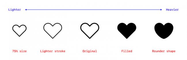 Каждый из значков архива обладает неким «визуальным весом», что может быть определен следующими параметрами: форма, размер, наполненность и толщина штрихов. Использование одинаковых характеристик в рамках одной коллекции иконок и обеспечивает ее целостность.