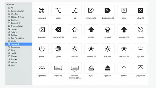 Недавно компания Apple скорректировала свои наработки и презентовала набор SF Symbols, отличное дополнение к шрифту San Francisco. SF Symbols тяготеет к более графическому стилю. Включает в себя несколько разных вариантов реализации тех или иных символов. Причем от значка к значку, их контуры и заливки стали гораздо гармоничнее.