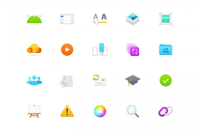Картинки из редактора Sketch изысканные и воздушные (визуально напоминает красочные иконки Icojam):