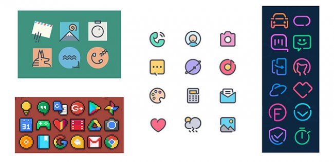 Соответствующие коллекции для Android создают самые разнообразные настроения на вашем экране. Здесь и абстракция, и пиксели, и пузырьки, и неон: