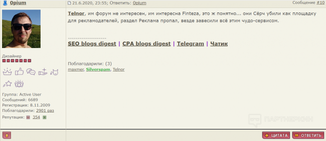 Другие же, наоборот, считают, что площадка собственникам не интересна для рекламы никого другого, кроме как Finteza: