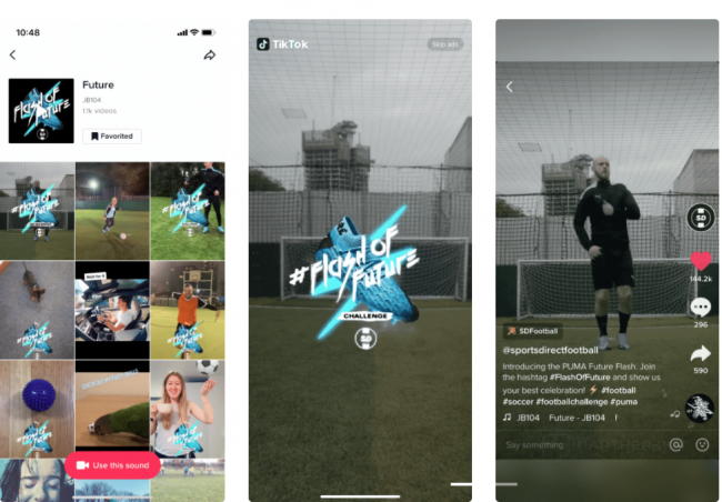 Hashtag Challenges — формат рекламного хэштега, который поощряет пользователей создавать UGC-контент и привлекать внимание других пользователей. Когда пользователь кликает на хэштег, он попадает на лендинг в TikTok, где представлен логотип рекламодателя и его веб-сайт.