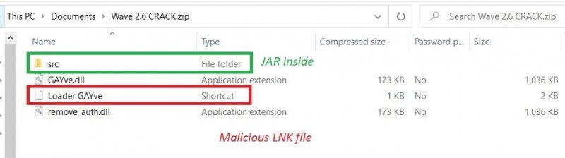 Такой файл ZIP содержит фальшивый файл ярлыка Windows (Loader GAYve), который служит каналом для развертывания вредоносного JAR-файла, который создает в системе папку «NS-<11-значное_случайное_число>» для хранения собранных данных.