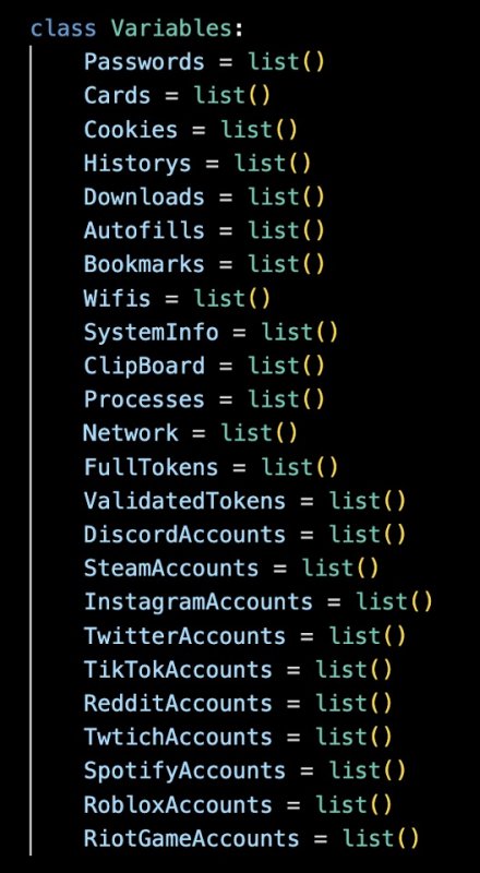 Cometlogger, в свою очередь, был способен похищать широкий спектр данных, включая файлы cookie, пароли, токены и данные об учетных записях из таких приложений, как Discord, Steam, Instagram, X, TikTok, Reddit, Twitch, Spotify и Roblox. Также он мог собирать данные о системе, информацию о сети и Wi-Fi, список запущенных процессов и воровать содержимое буфера обмена.