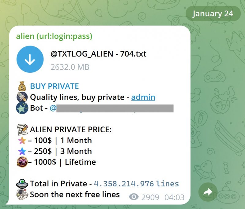 Основатель HIBP Трой Хант (Troy Hunt) сообщил, что обнаружил 284 132 969 скомпрометированных аккаунтов, анализируя 1,5 ТБ логов стилеров, судя по всему, собранных из множества разных источников и опубликованных в Telegram-канале ALIEN TXTBASE.