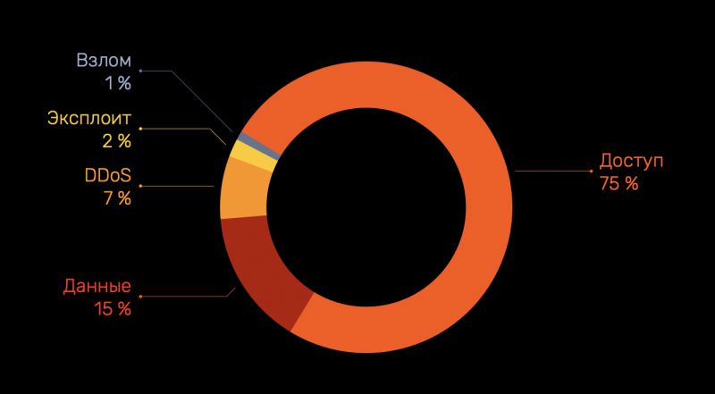 Торговля доступами составила 75% всех объявлений, относящихся к промышленности, и их стоимость обычно колеблется от 500 до 5000 долларов США.