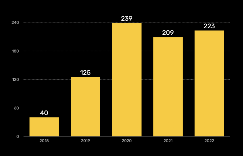 В общей сложности в промышленных компаниях было зафиксировано 223 инцидента, вызванных атаками злоумышленников, и это на 7% больше, чем в 2021 году. Больше всего инцидентов (75) пришлось на второй квартал 2022 года, и почти все атаки (97%) на организации этого сектора были целевыми.