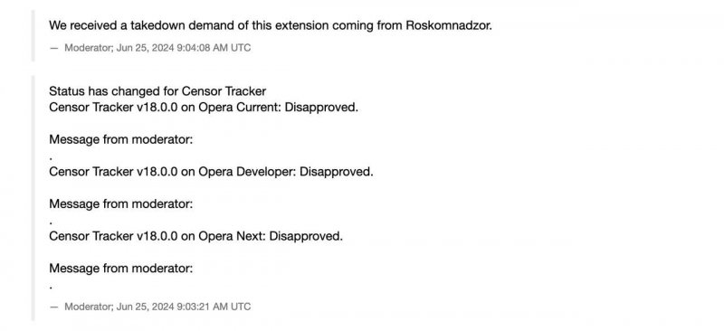 Отметим, что по состоянию на 26 июня 2024 года Censor Tracker уже недоступен в Opera, но пока доступен в Chrome Web Store.