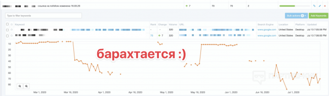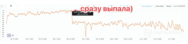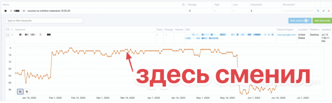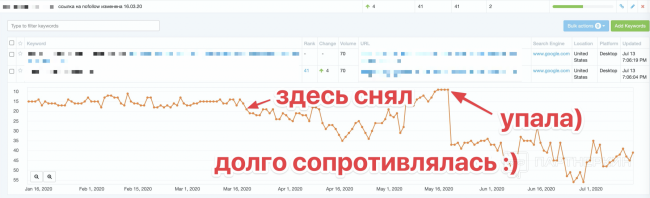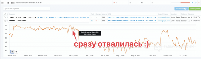 1. Ссылка долго передавала позицию, но только через 2 месяца решила наконец отвалиться - позиция просела: