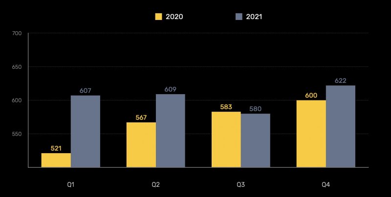 Количество атак на криптобиржи также выросло на 44% в сравнении с 2020 годом. К тому же в прошлом году произошла одна из крупнейших краж криптовалюты в истории: злоумышленники похитили около 600 миллионов долларов у PolyNetwork.