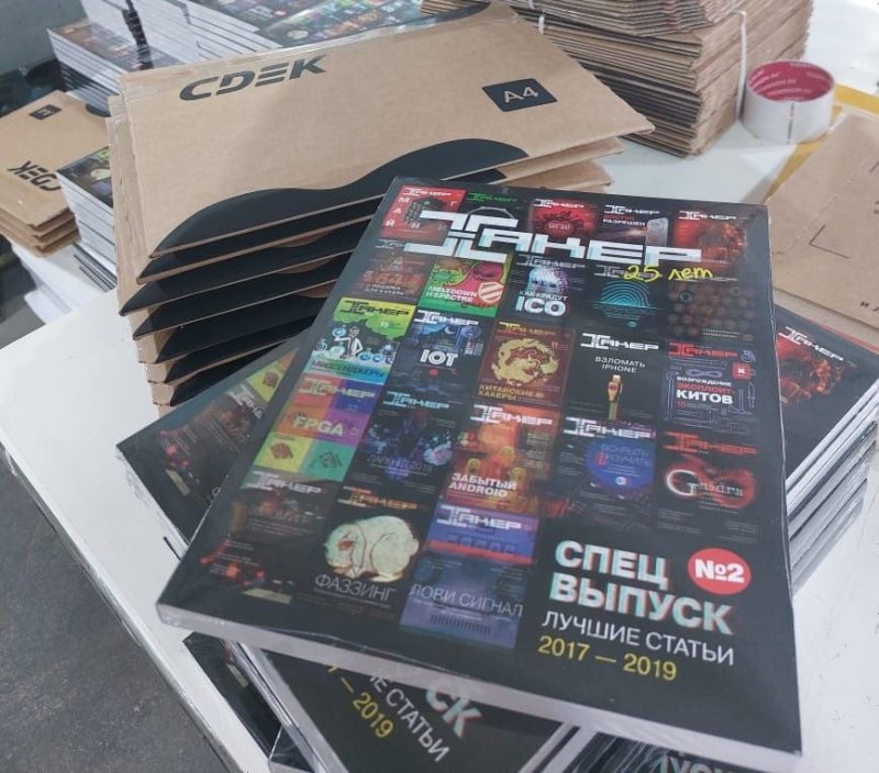 У нас отличные новости: тираж второго бумажного спецвыпуска «Хакера», в котором собраны лучшие статьи за 2017–2019 годы, покинул типографию. Журналы, защищенные термоусадочной пленкой и упакованные в прочные картонные конверты, уже направляются к своим владельцам.