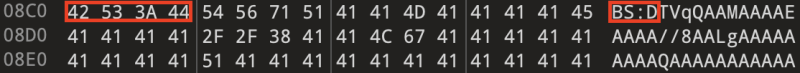 После BS: идет текстовый шаблон в кодировке Base64, который очень часто составляет первые три байта исполняемого (PE) файла (4d ). Содержимое, начинающееся с TVqQ, — это P2-оверлей, не являющийся частью содержания LNK. Декодируешь эту строку из Base64 — получаешь вредоносный PE-файл.
