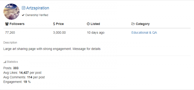 Закрытый аккаунт, посвященный искусству. На площадку подписано 547 000 пользователей. Размещено 1 869 публикаций. Владелец аккаунта хотел получить за свою площадку $29 000. Давайте разберемся, насколько обоснована подобная цена.