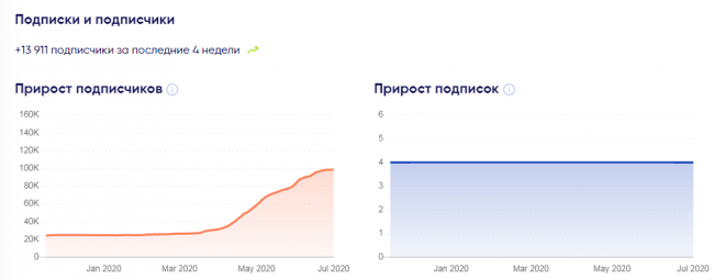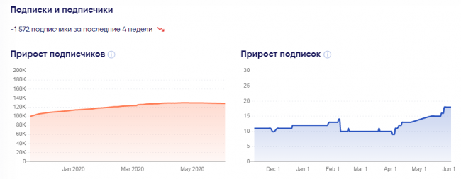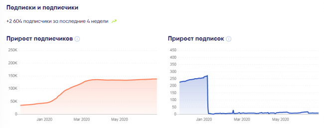 График роста подписчиков плавный. Хотя за последний месяц их количество уменьшилось. Это может быть связано с периодическими чистками аккаунта от массфолловеров, ботов и неактивных профилей.