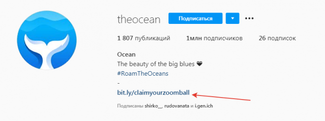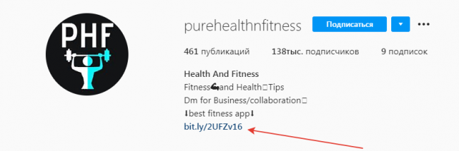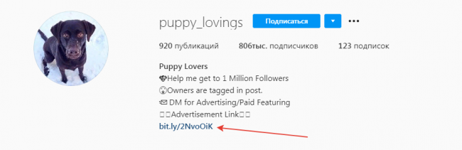 В описании шапки профиля прикреплена рекламная ссылка, ведущая на различные офферы.