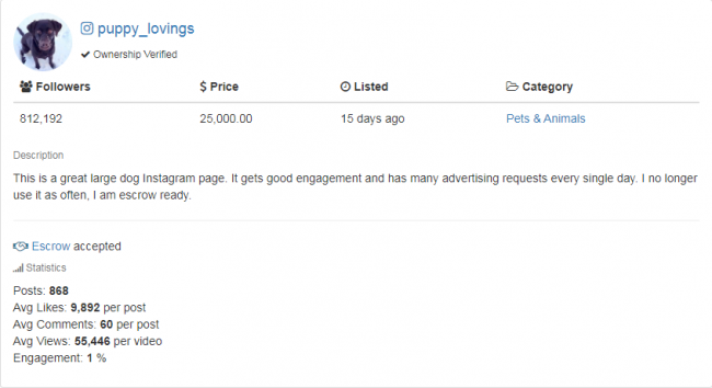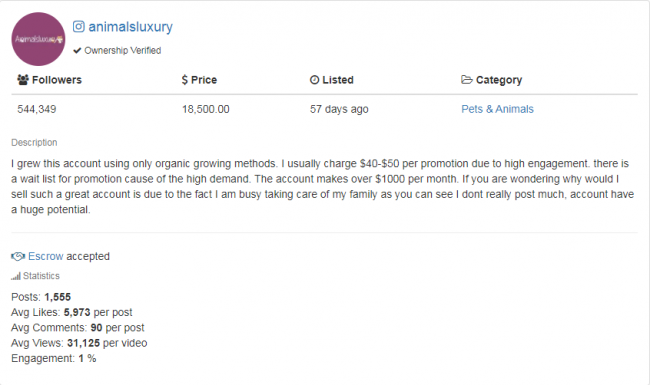На Fameswap можно приобрести Instagram-аккаунтов на любой вкус и кошелек. Прежде чем переводить владельцу оплату, тщательно проверьте площадку. На практике аккаунт с миллионом подписчиков, по факту, может быть практически мертвым, а площадка с несколькими сотнями тысяч фолловеров и большой вовлеченностью приносить огромный доход.