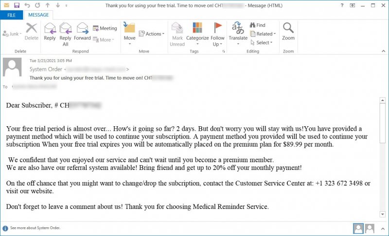 Операторы BazarCall действуют по простой, но очень эффективной схеме. Всё традиционно начинается с фишинговых писем, и чтобы привлечь внимание будущей жертвы, хакеры используют приманки, связанные бесплатными пробными версиями различных продуктов и якобы истекающими подписками на медицинские, ИТ или финансовые услуги (которые нужно срочно отменить, во избежание списания средств). При этом все письма содержат инструкцию, согласно которой, для отмены подписки получатель должен позвонить по указанному номеру телефона.