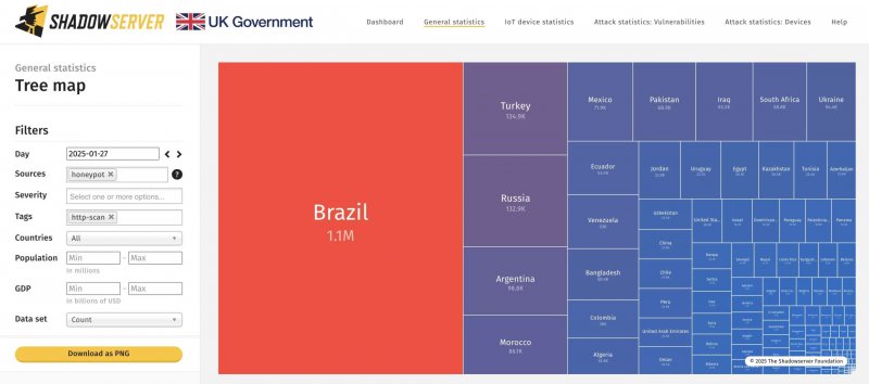 The Shadowserver Foundation предупреждает о масштабной брутфорс-кампании, в которой задействованы почти 2,8 млн IP-адресов. Неизвестные злоумышленники стремятся подобрать учетные данные для широкого спектра сетевых девайсов, включая устройства Palo Alto Networks, Ivanti и SonicWall.
