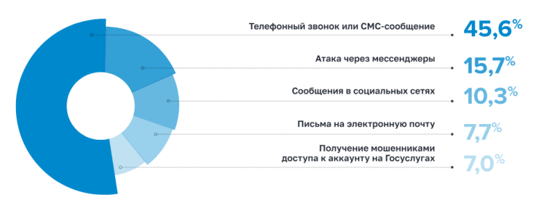 Стоит отметить, что согласно официальной статистике ЦБ РФ за 2024 год, лишь 15,7% атак мошенников совершается через мессенджеры. Тогда как на телефонные звонки и SMS-сообщения приходится 45,6% инцидентов.