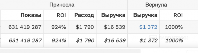 В примере приведена статистика одного из источников из списка выше — нативной рекламы (конкретное название источника говорить не буду))).