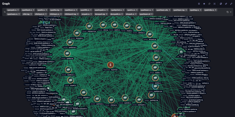 Аналитики компании F6 обнаружили сеть доменов группировки NyashTeam, которая распространяет малварь, а также предоставляет хостинг-услуги преступникам. Клиенты группы атаковали пользователей как минимум в 50 странах мира, включая Россию. Более 110 доменов в зоне .ru, которые использовала NyashTeam, заблокированы.