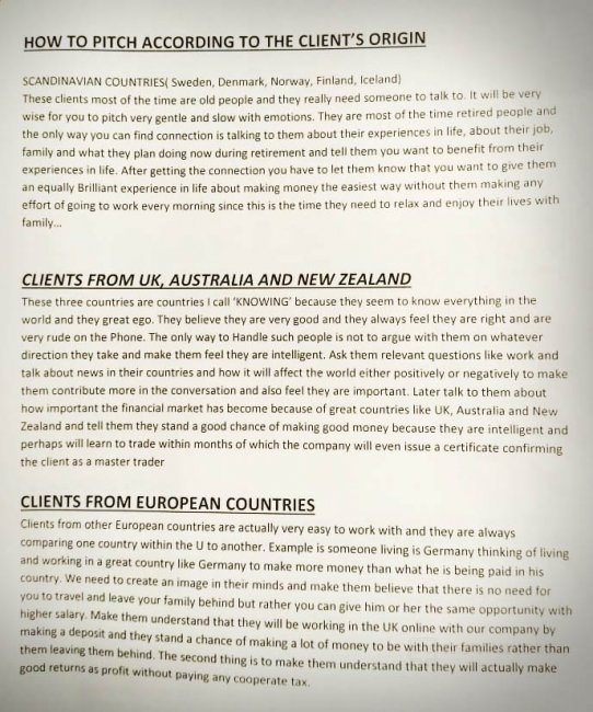 Примечательно, что в отделе продаж висела инструкция о том, как работать с клиентами из разных стран: