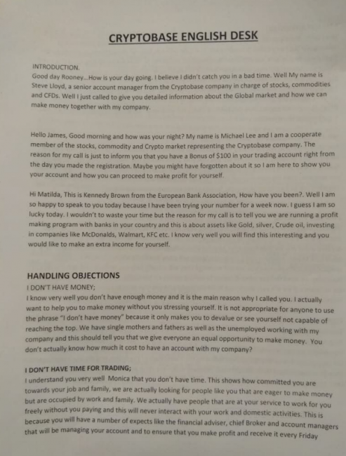 А так выглядел сценарий общения с клиентом, по каким-либо причинам не желавшим совершать инвестиции: