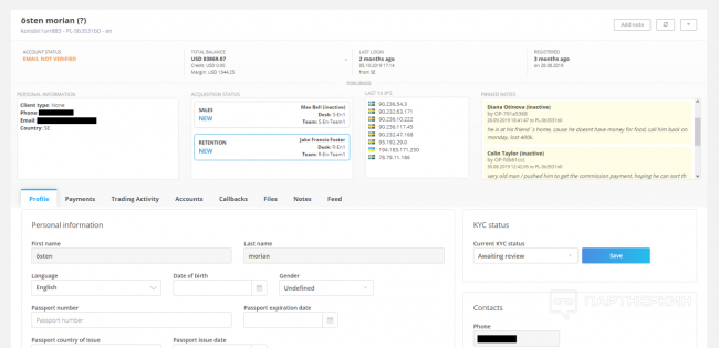 Клиенты, проявившие хоть какой-то интерес, направлялись в отдел «Удержание». Здесь работали лучшие продажники. Их главной целью было вести переговоры с клиентами и заставлять вкладывать еще больше денег. Именно здесь и начинались крупные аферы. Продажникам допускалось говорить всё, кроме правды — что инвестиции фейковые.