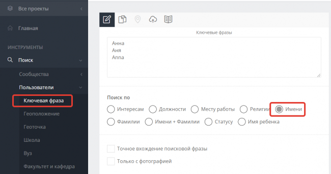 Чтобы настроить таргетинг, соберите с помощью парсера пользователей с определенным именем. Допустим, Анна.