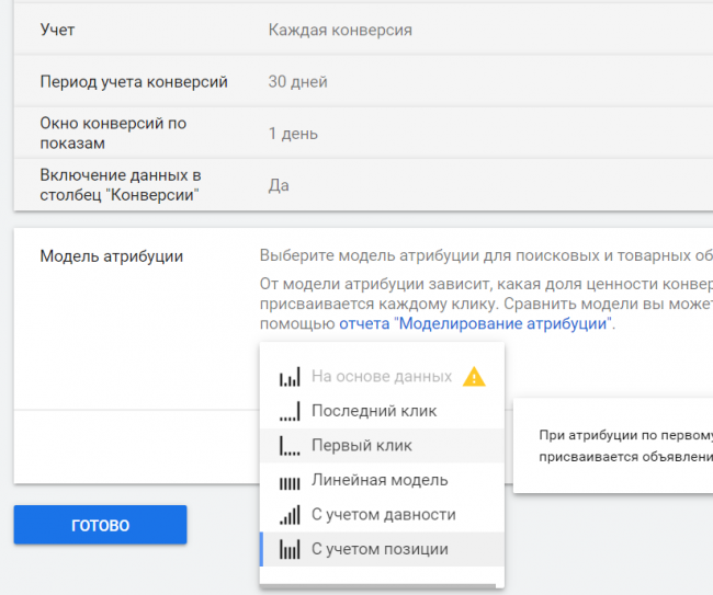 Google Ads дает нам несколько инструментов, с помощью которых мы можем правильно подобрать модель атрибуции.